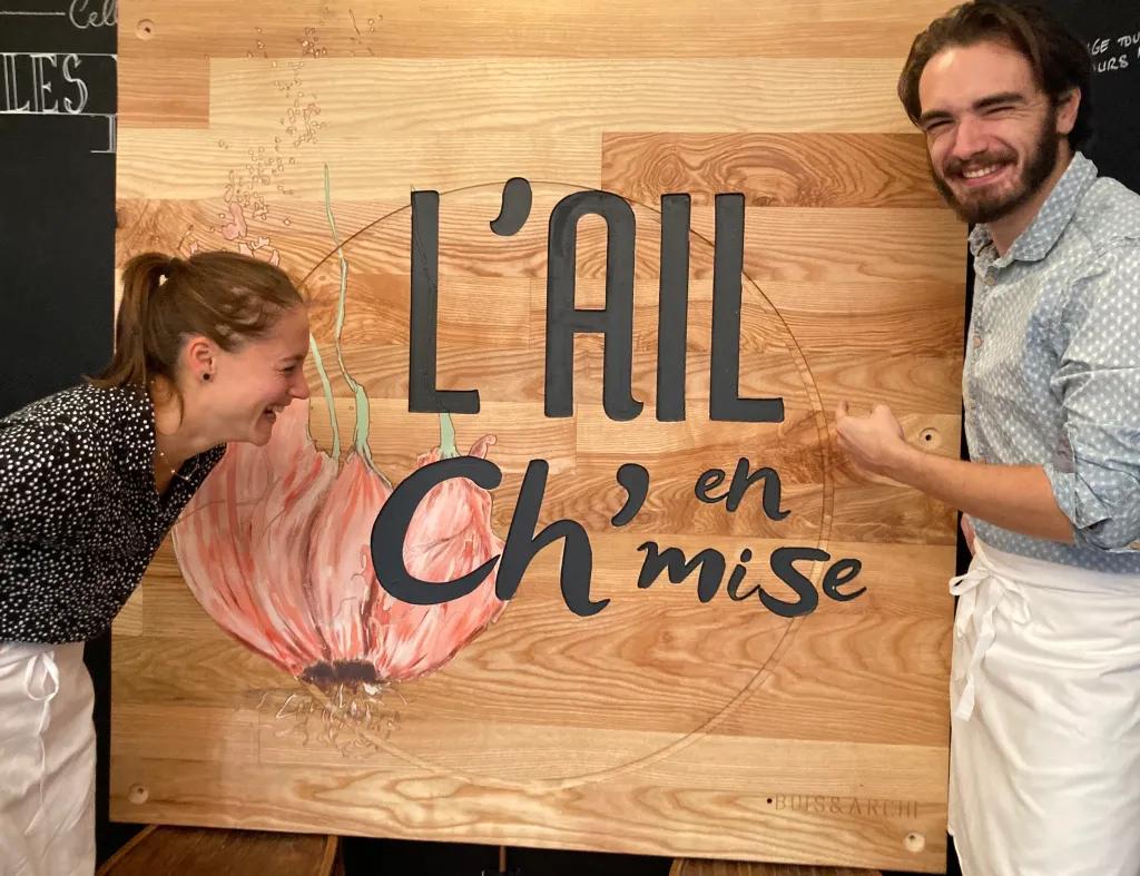 Ayant tous deux travaillés en restauration et étant passionnés de gastronomie et d’accueil ; il était naturel pour notre duo d’ouvrir un jour notre restaurant. Nous avons à cœur de mettre au centre de nos projets toutes les valeurs qui nous animent telles que les circuits courts, la mise en valeur de produits de qualité ainsi que le lien avec notre territoire et les personnes qui le font vivre. Nous nous sommes rencontrés tous deux au sein d’une association et depuis, nous poursuivons l’objectif de redynamiser le centre de notre village.